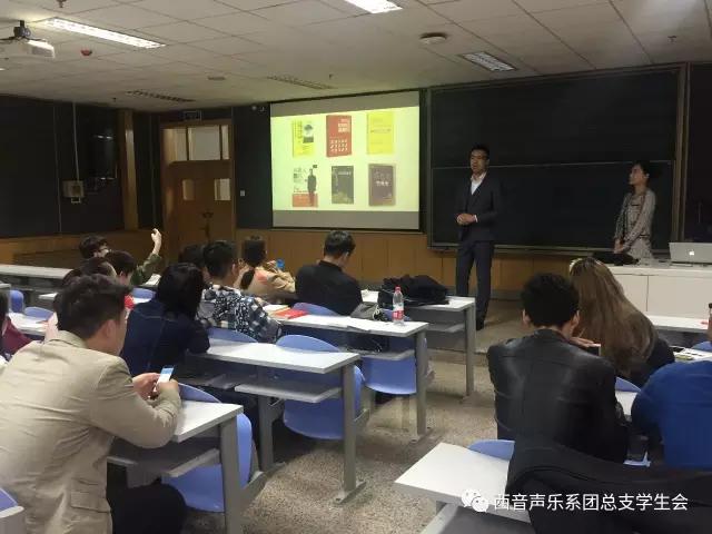 随后、王兢德同学跟大家分享了他的读书心得:在声乐专业中,声乐技能以及相关书本对专业学习的重要性,并讲述了如何向作者对话,建议用便签做四个问题来建立连接: