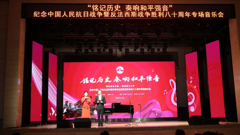 为纪念中国人民抗日战争暨世界反法西斯战争胜利八十周年,弘扬伟大抗战精神,激发广大师生的爱国热情与时代责任感,2025年9月23日,西安音乐学院声乐系副主任鲜于越歌带领青年教师一行15人赴陕西理工大学开展交流活动,并成功举办了“铭记历史 奏响和平强音”纪念中国人民抗日战争暨世界反法西斯战争胜利八十周年专场音乐会。两校师生以音乐为媒,共同呈现了一场艺术与历史交融、情感与信念共鸣的视听盛宴。陕西理工大学各级领导、师生代表和汉中市文艺界专家、声乐爱好者等800余名观众现场观看。