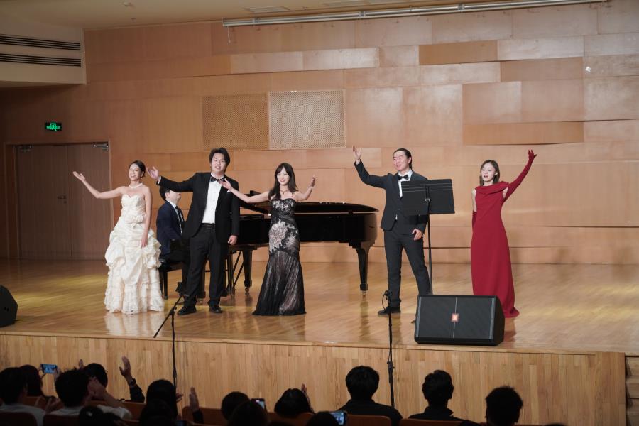 演出当晚,田海元以舞台为课堂,进行了一次教学成果的“沉浸式”汇报。琴声不仅是精准的伴奏,更牵引着学生的情感,引导着他们的声音。莫扎特的轻快、贝利尼的柔美、威尔第的激昂……在每一首曲目演唱中,学生们不再是单纯的演唱者,而是在老师的艺术引领下,成为了故事的讲述者。特邀嘉宾谭惠尹的加入、双钢琴的丰富织体与重唱的和谐共鸣,让观众亲身体验到丰富多彩的艺术表现形式,展现了经典作品的艺术魅力。