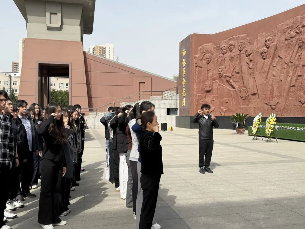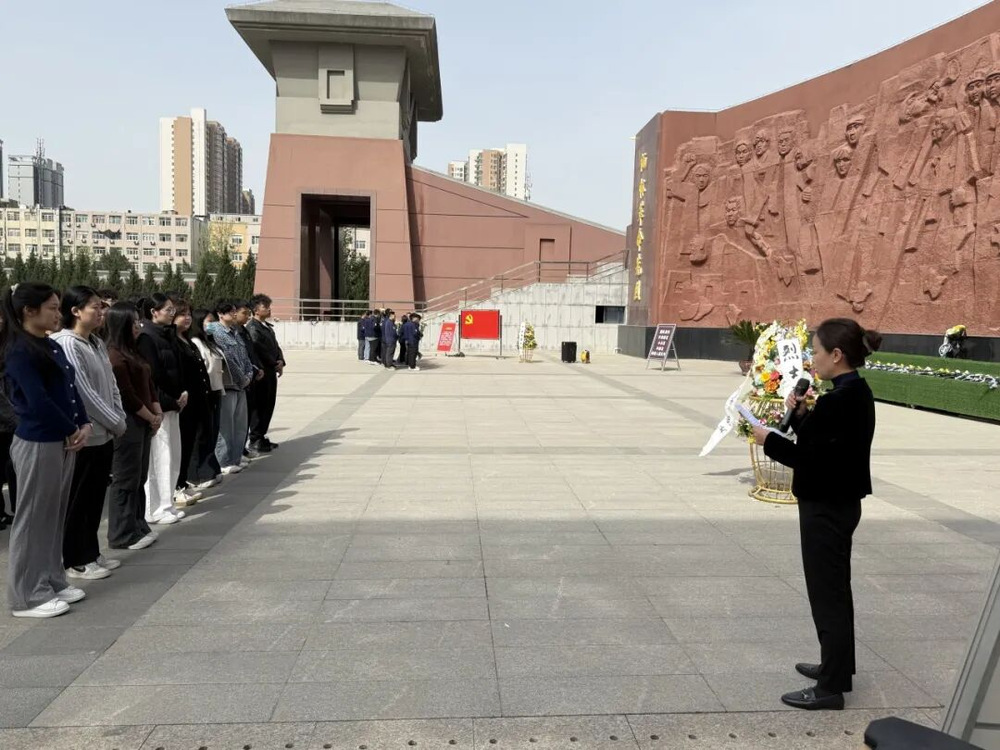 学生党支部书记高媛在纪念碑前深情讲述革命先烈的英勇事迹。她结合西安这座英雄城市的光辉历史,讲述了革命战争年代一批批仁人志士为了理想信念不惜牺牲生命的感人故事。她勉励同学们,作为新时代的青年学子,要铭记历史、珍惜当下,树立正确政绩观,将英烈精神内化于心、外化于行,在专业学习中砥砺本领,在艺术实践中传递爱国情怀,以青春之我担时代之责,为实现中华民族伟大复兴贡献自己的力量。